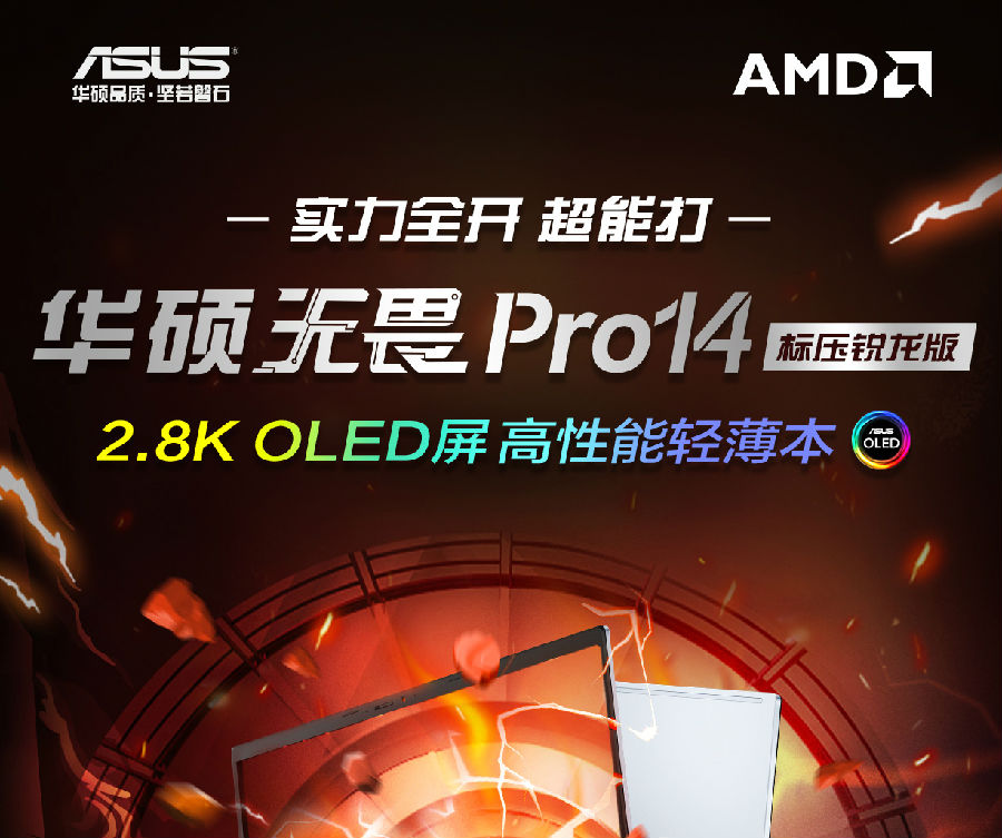 華碩無畏Pro14 標壓銳龍版 2.8K OLED屏輕薄筆記本電腦